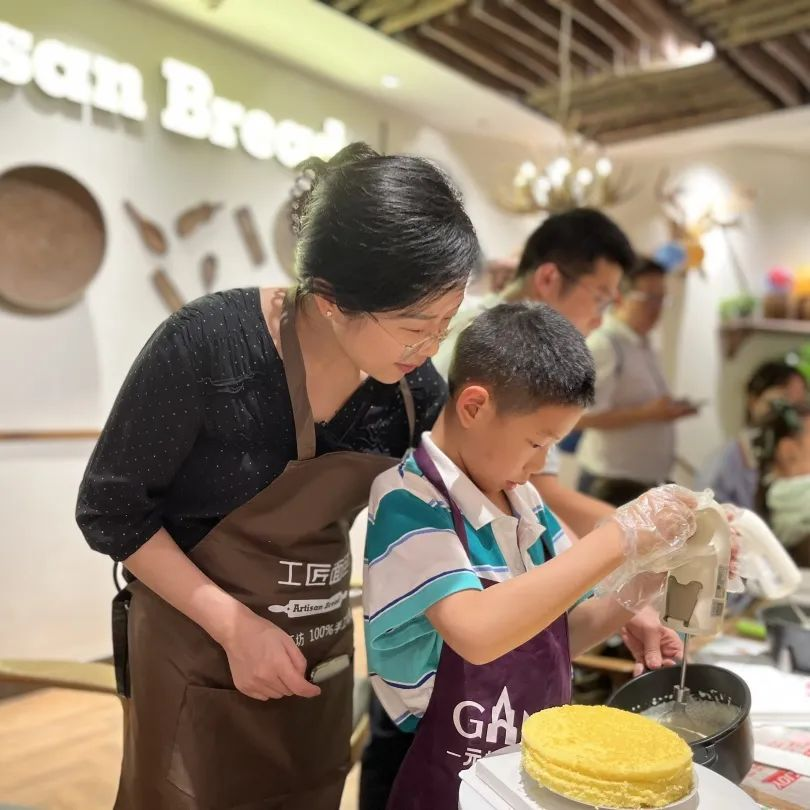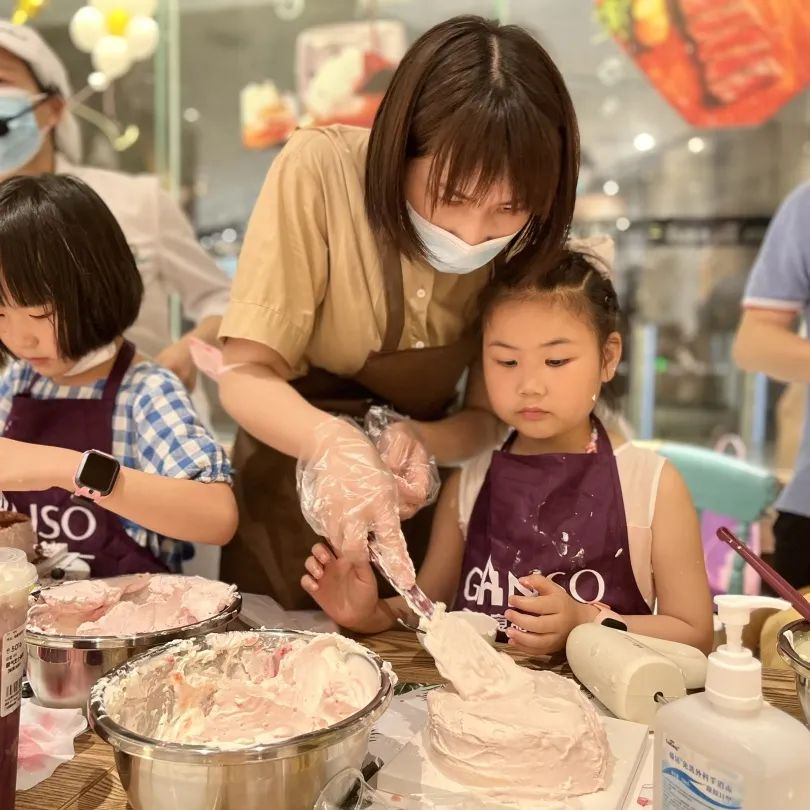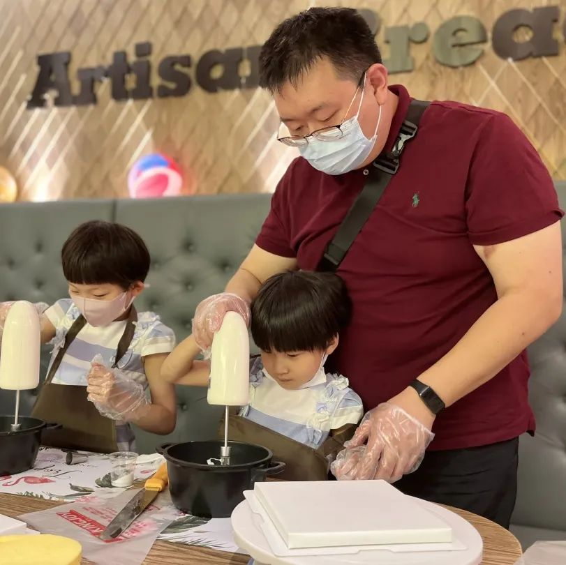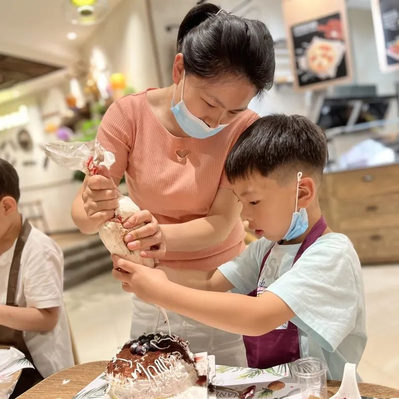 活動(dòng)現(xiàn)場(chǎng),孩子們?cè)诤姹簬煹南ば闹笇?dǎo)和父母的協(xié)助下,精心制作出屬于他們獨(dú)一無二的美味蛋糕。
